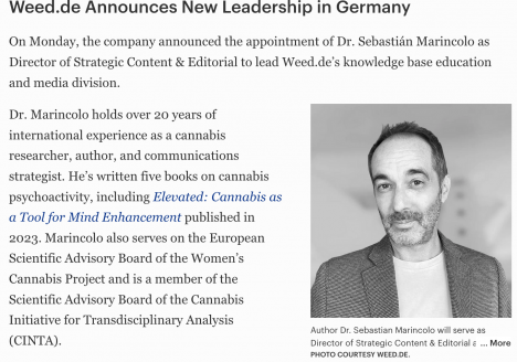 Forbes Reports on Sebastian Marincolo’s New Position at Weed.de